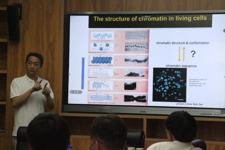 学术交流活动中,邀请了十位生物信息和计算机领域的学者教授进行学术讲座,他们从自己的研究领域出发,为同学们进行了深入浅出的讲解并与同学们一同分享和探讨。郑金水副教授介绍了生物信息学手段在微生物中的应用,周雄辉副教授分享了机器学习算法在生物医学问题中的应用,李立教授讲述了生物的微观结构和三维基因组的研究内容并分享了自己的科研心得,鼓励同学们发现并研究生物学问题。沙灜教授讲述了自然语言处理中的问题与方法,冯在文副教授介绍了知识图谱和语义提取,朱容波教授对智慧农业进行介绍,展示了一系列基于人工智能和物联网的智能硬件。马彬广教授对生物调控机制和基因三维结构进行了介绍,曾玺副教授对病原微生物和人类疾病关系的研究进行了分享,讨论病毒在人基因组中的整合以及对健康的影响。刘友发老师度对深度学习中注意力机制的压缩方法进行了讲解,章文教授从图神经网络出发,为我们展示了生物数据挖掘的思路和过程。