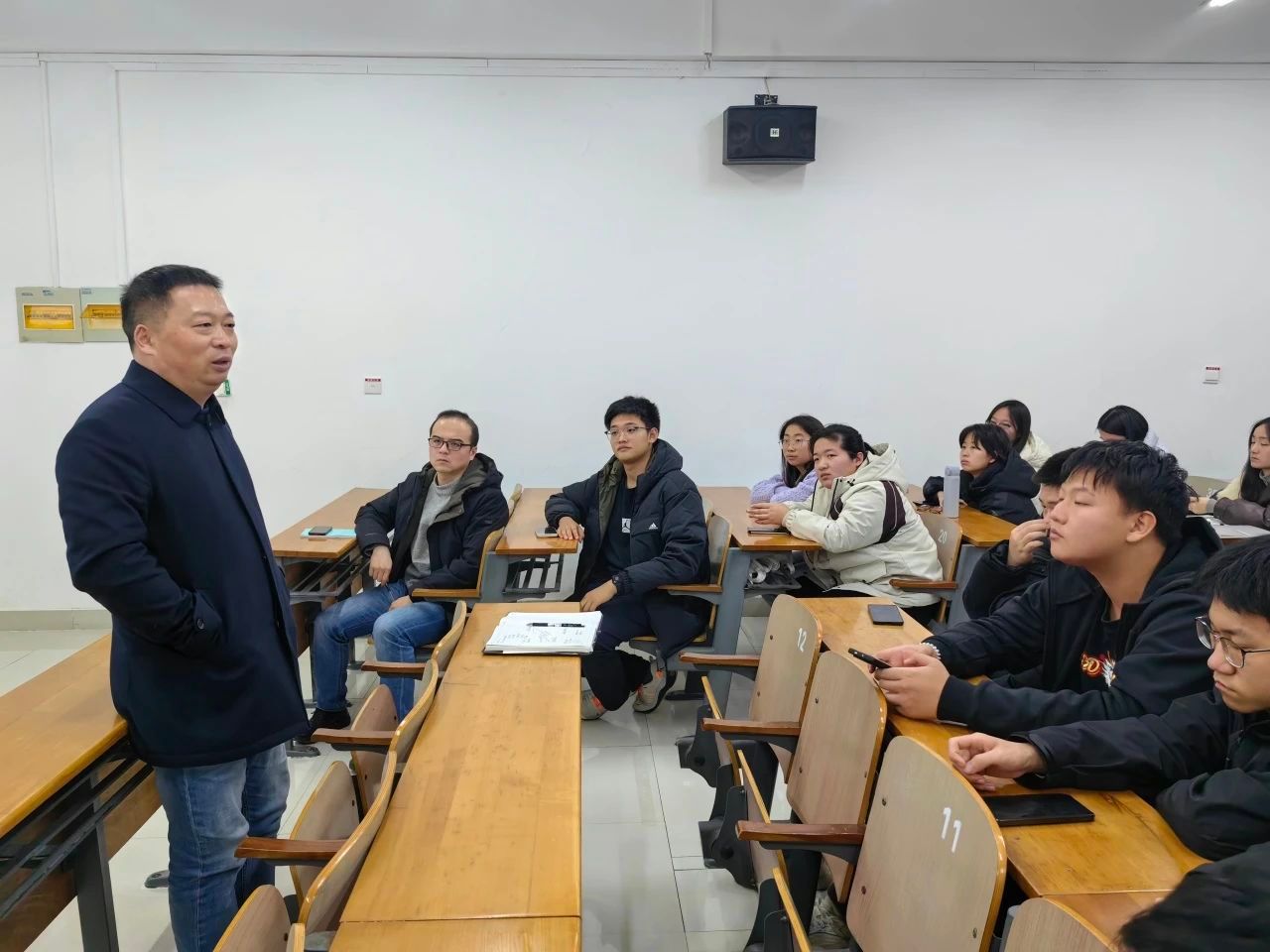 副校长李大鹏先后走访23级24级多个班级,就专业前景、行业发展、身体状况等多个方面与同学们交流。在信科2403班,副校长李大鹏关切地和同学们交流春节趣闻,从亚冬会到deepseek,从春晚机器人到电影《哪吒》,同学们畅所欲言。李大鹏表示,科技发展的背后,数学学科在发挥重要作用。他分享到,“数学是学科之母,如果没有数学,这个世界将暗淡无光。”