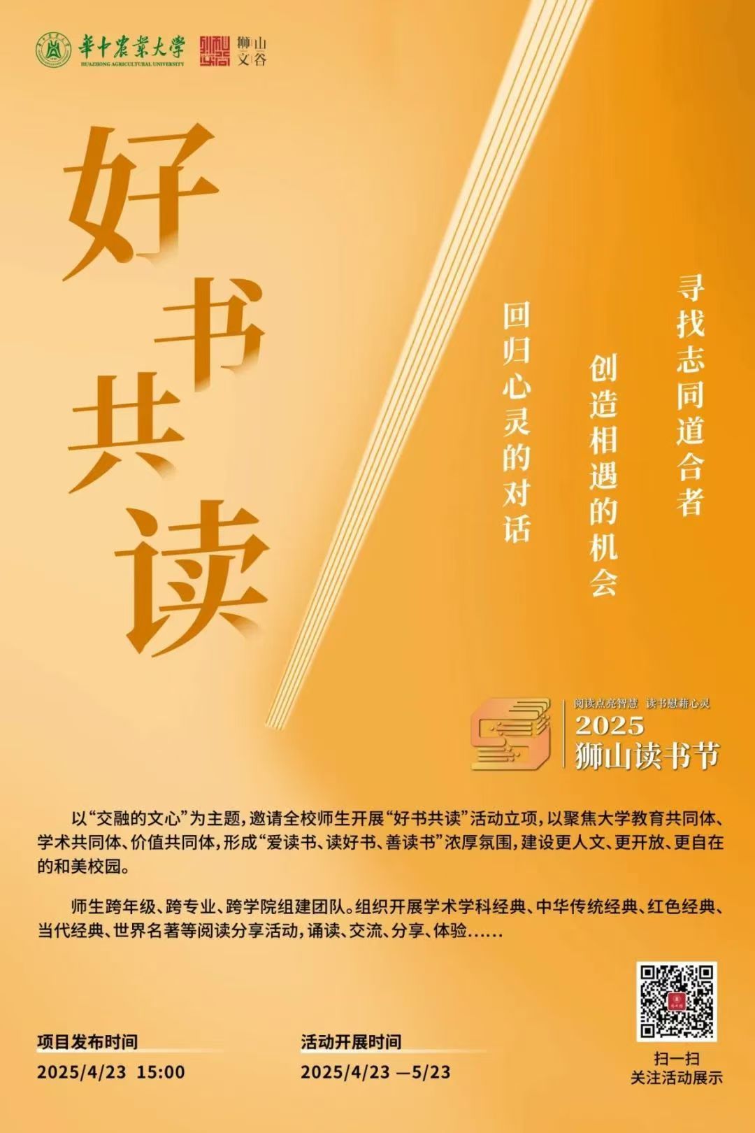 (通讯员 | 任彦儒 编辑 | 任彦儒 审核 | 刘进)4月8日至16日,学校以“交融的文心”为主题,邀请全校师生开展“好书共读”活动立项,组织开展学术学科经典、中华传统经典、红色经典、当代经典、世界名著等阅读分享活动。