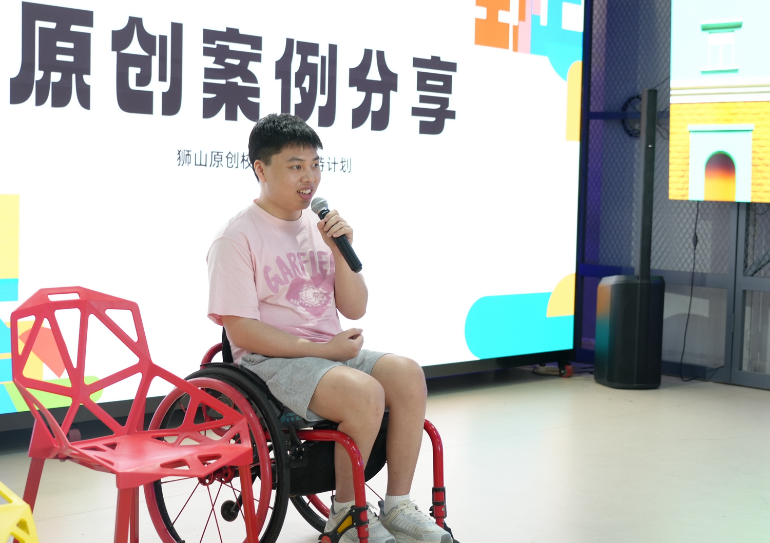 在原创案例分享活动现场,6位2023年度狮山原创校园艺术支持计划创作者依次分享了在学校和师生助力下不断创作的心路历程。