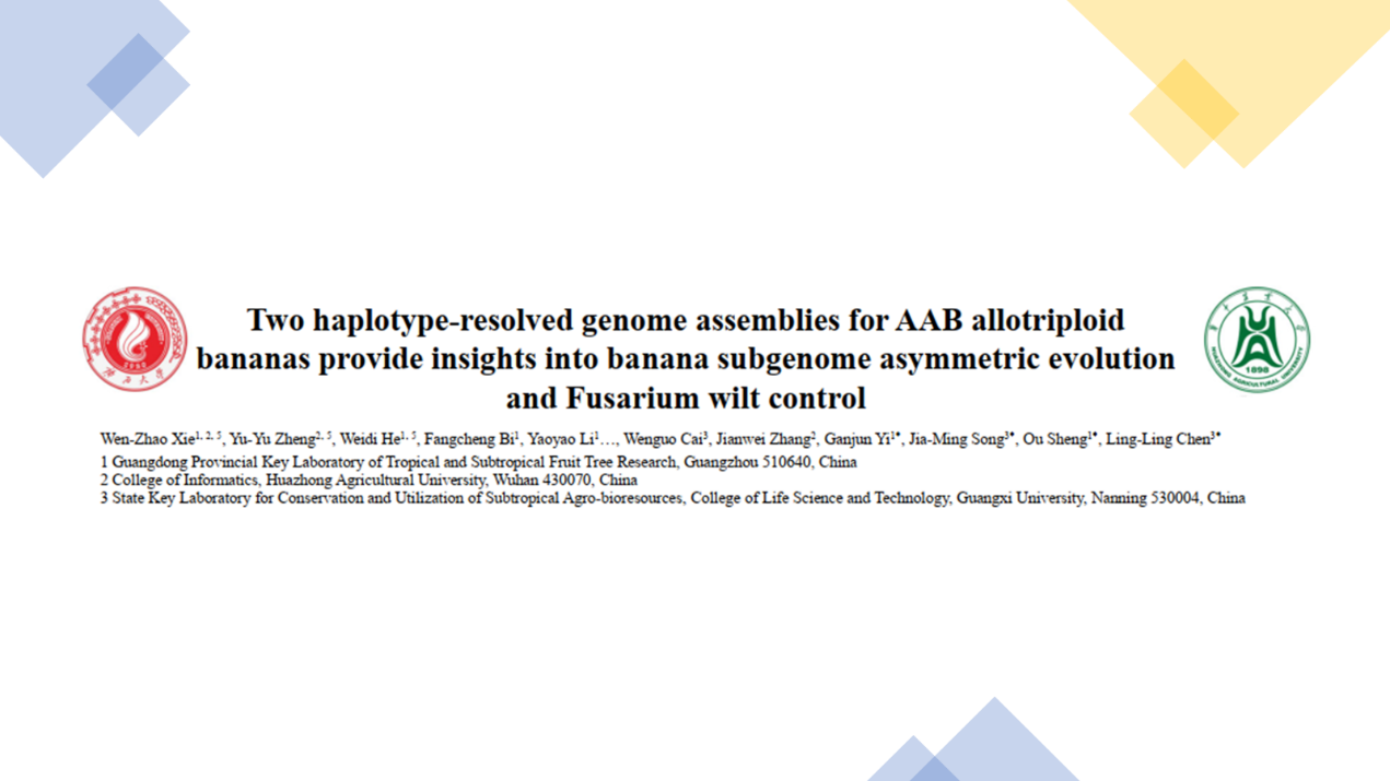 图1 谢文召分享工作《Two haplotype-resolved genome assemblies for AAB allotriploid bananas provide insights into banana subgenome asymmetric evolution and Fusarium wilt control》
