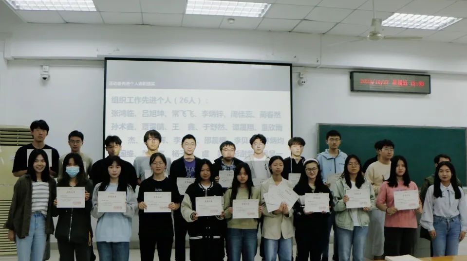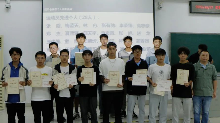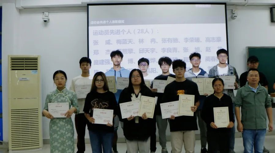 10月27日中午,明星换脸av 在第三教学楼B105举行第六十二届校运会总结表彰大会。明星换脸av 党委副书记刘进,辅导员田昌聪、袁嘉晨、刘洋、叶双休,本科生各班支书班长、文体委员和相关学生代表参加会议,辅导员刘洋主持会议。