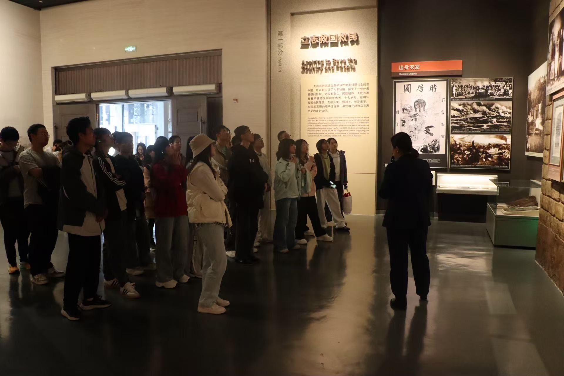 随后,团队走进毛泽东考察湖南农民运动历史陈列馆,重温毛泽东同志32天徒步考察五县的峥嵘岁月,馆内的史料实物,正是 “没有调查就没有发言权” 这一真理的生动注脚,师生深刻感悟到了群众路线的深厚内涵。