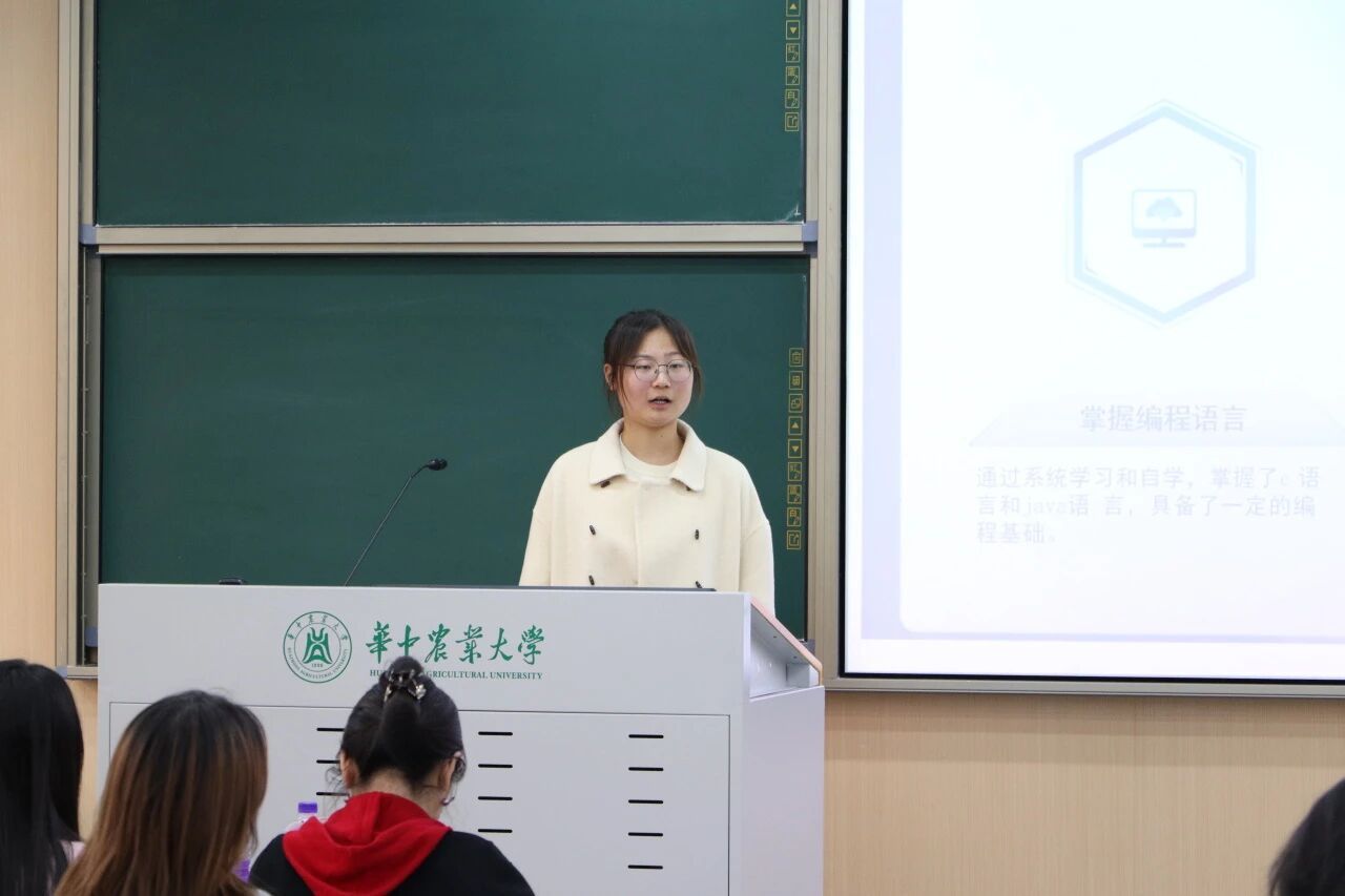来自计算机类2504班的刘家恺,受国家政策以及时代要求的影响启发,立志成为大数据算法工程师。他设定了短期、中期和长期目标,并制定了详细的本科阶段发展计划,思路清晰、考虑周全。老师对他的展示给予了充分肯定,指导进一步他优化展示内容,并建议他多多关注Python语言与大数据的联系。