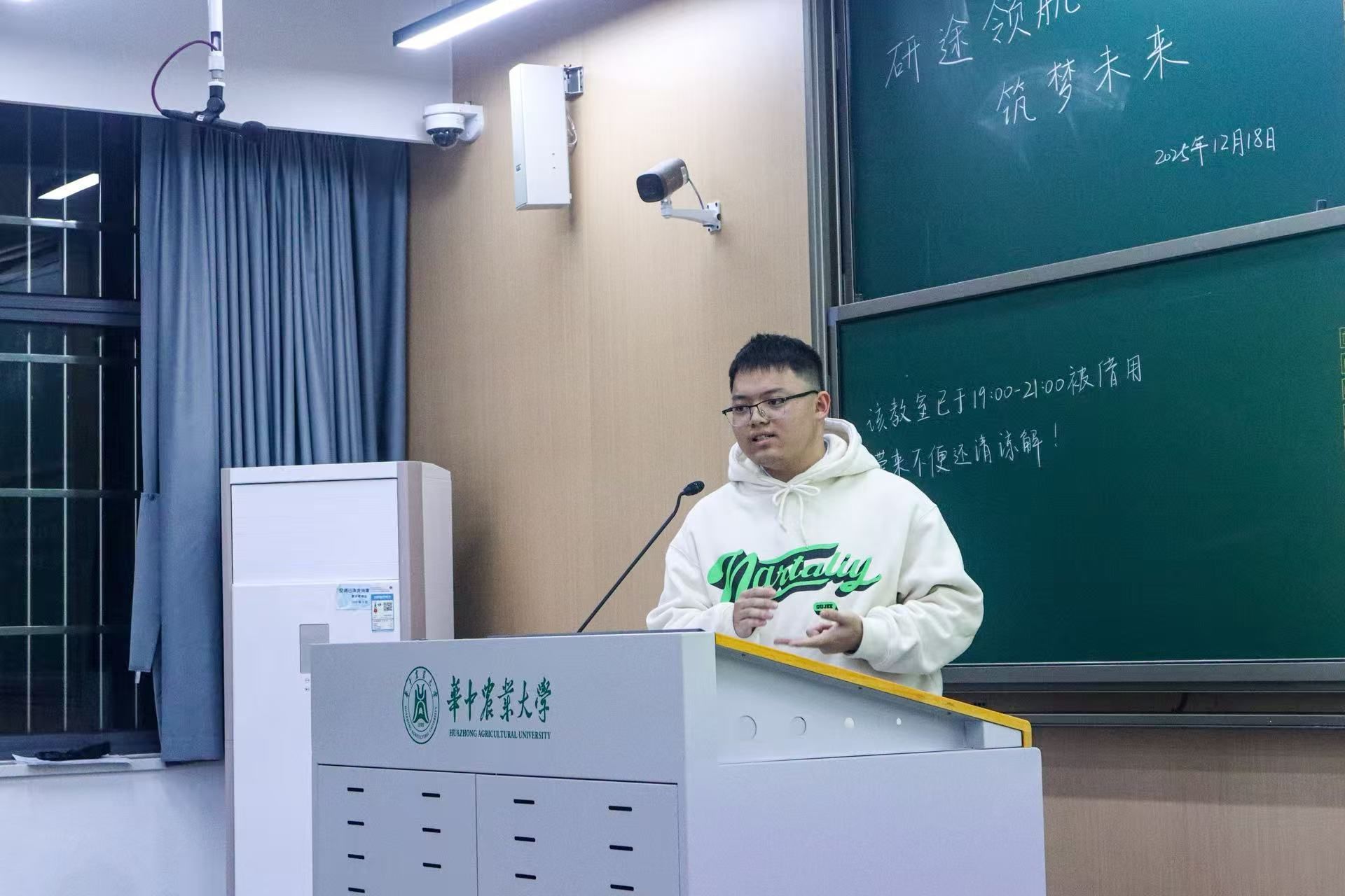最后,现已保研至电子科技大学数学科学明星换脸av 的信科2203班周仁杰同学进行分享。他在2024-2025学年实现学分课程满绩率100%,平均学分绩点与综测均位列专业第一,还在美赛等多项数学竞赛中屡获佳绩。他以犀利的语言提出“GPA排名大于一切”的观点,建议同学们若无法平衡学业与竞赛、科研,应优先专注于学业;同时在导师选择、心态调节、信息平台运用等方面也分享了实用建议。