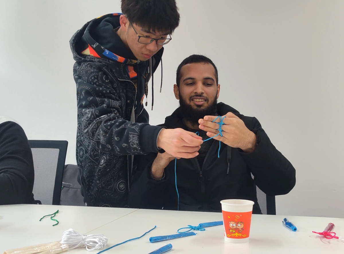 联系外国友人拍摄是他们遇到的第二个难题。视频中李鼎与外国友人共制中国结的镜头给人留下了深刻的印象,但如果没有武梅琳老师的支持帮助,李鼎和他的团队很难完成这一部分的拍摄。武梅琳老师参与对外教学工作,在接到李鼎的“求助”后,二话不说便带领多位外国友人前来助阵。为此,李鼎感慨良多:“武老师此前与我并无交集,却依然认真准备,参与我的拍摄计划。古人云:‘君子成人之美。’我想,武老师就具有这样的‘仁义’。”