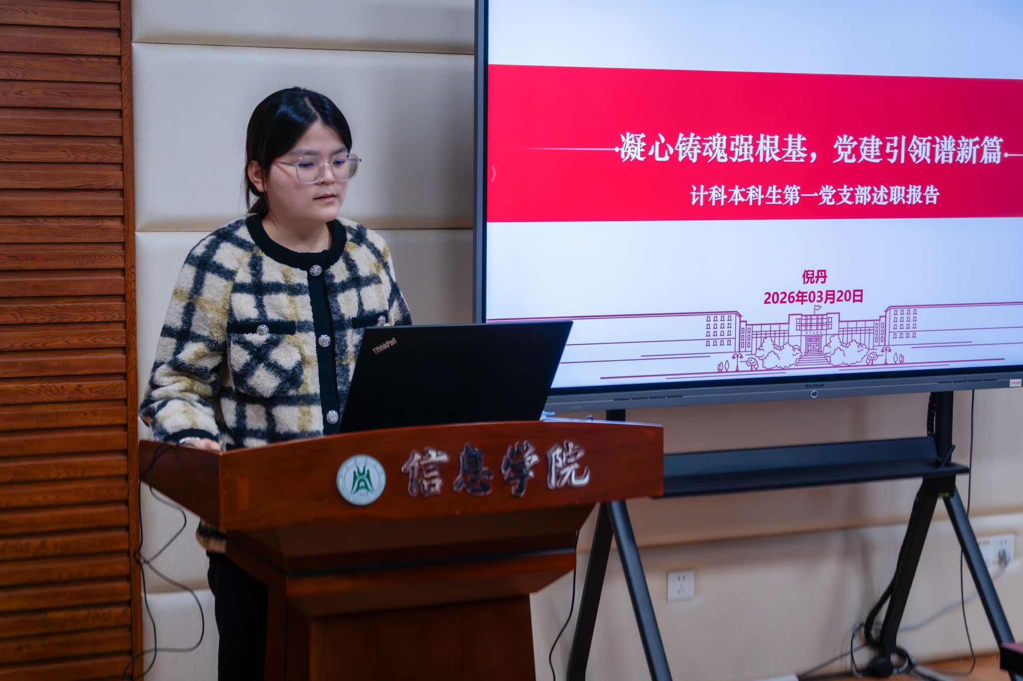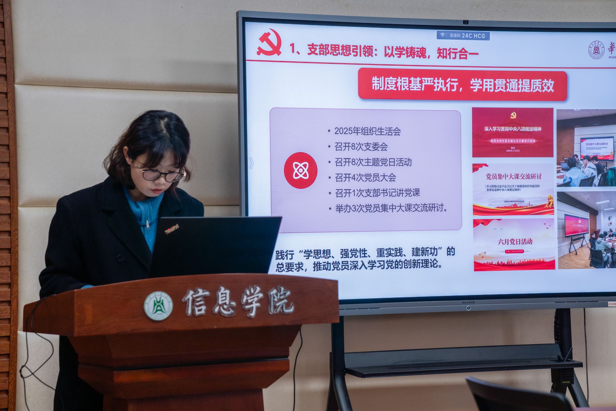 随后,各党支部书记依次进行述职汇报。各党支部围绕2025年度党建工作开展情况,从组织建设、理论学习、党员发展、主题党日活动、志愿服务及党建与学习科研融合等方面进行了全面总结。针对存在的问题进行了深刻剖析,并提出了改进思路。