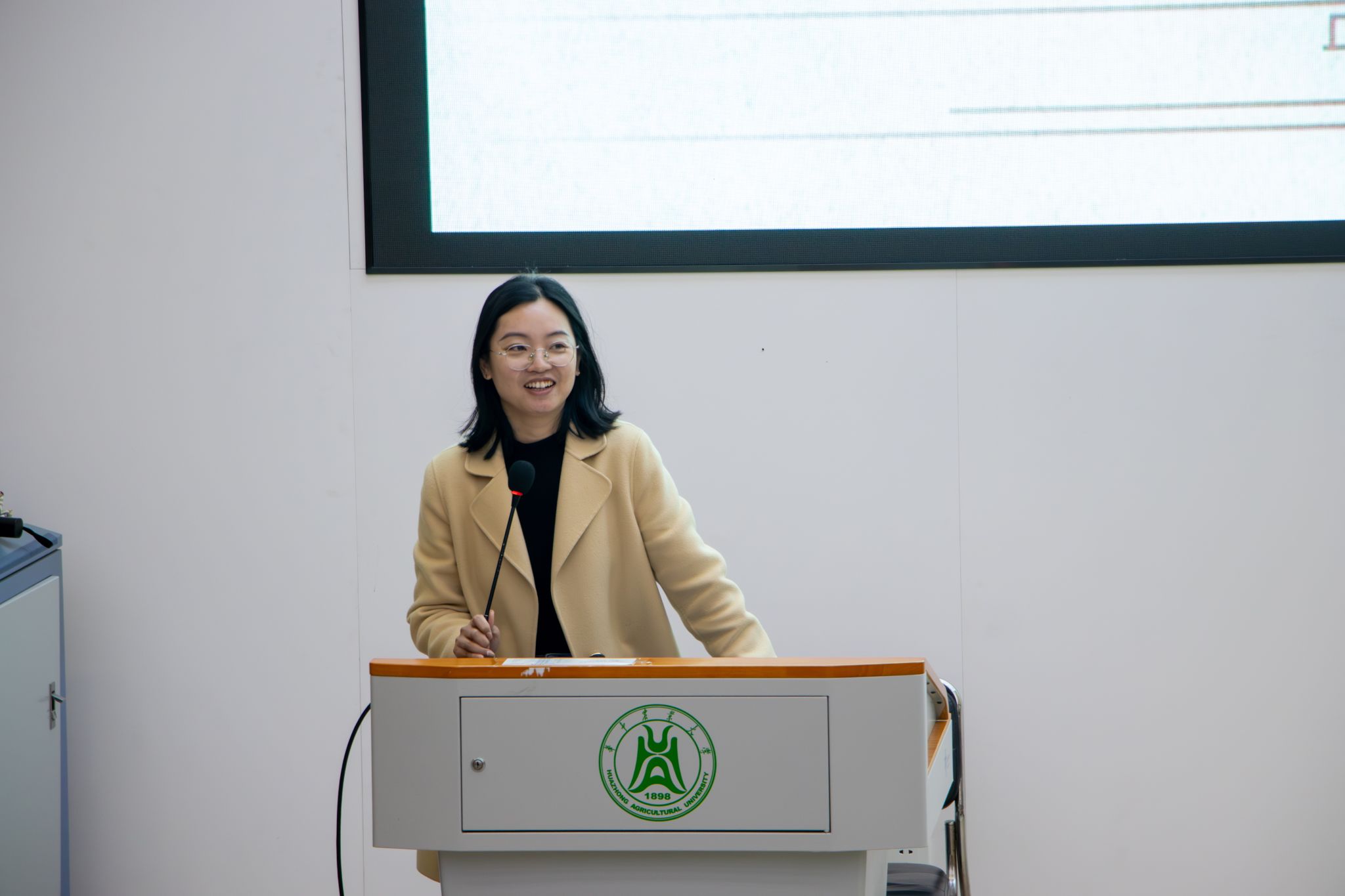 本科生院招生工作办公室詹慧光老师为新洲四中师生宣讲了校史校情及招生情况。她从学科布局、人才培养、文化建设等方面进行了介绍解读。宣讲结束后,新洲四中高一14班朱文杰同学谈到:“老师的讲解打破了我对农学的刻板印象,现代农业已经和生物科技、人工智能等领域深度融合,需要更多的人才加入到农科建设队伍之中。”