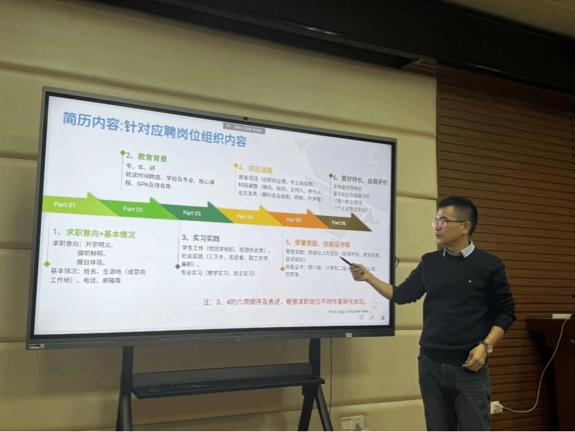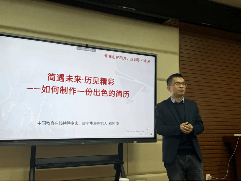 (文字|陈钰轩 图片|熊睿彬,郭芊芊 审核|苗壮)为助力同学们高效掌握简历制作的实用技巧,在求职时期打造出能凸显个人优势的高分简历,明星换脸av 于11月17日晚19:00在第一综合楼B113举办了“求职赋能,简历点睛——解锁简历制作高分技巧”专题活动。本次活动特邀中国教育在线特聘专家、宸宇生涯创始人穆凯锋老师为同学们带来一场深度讲解。