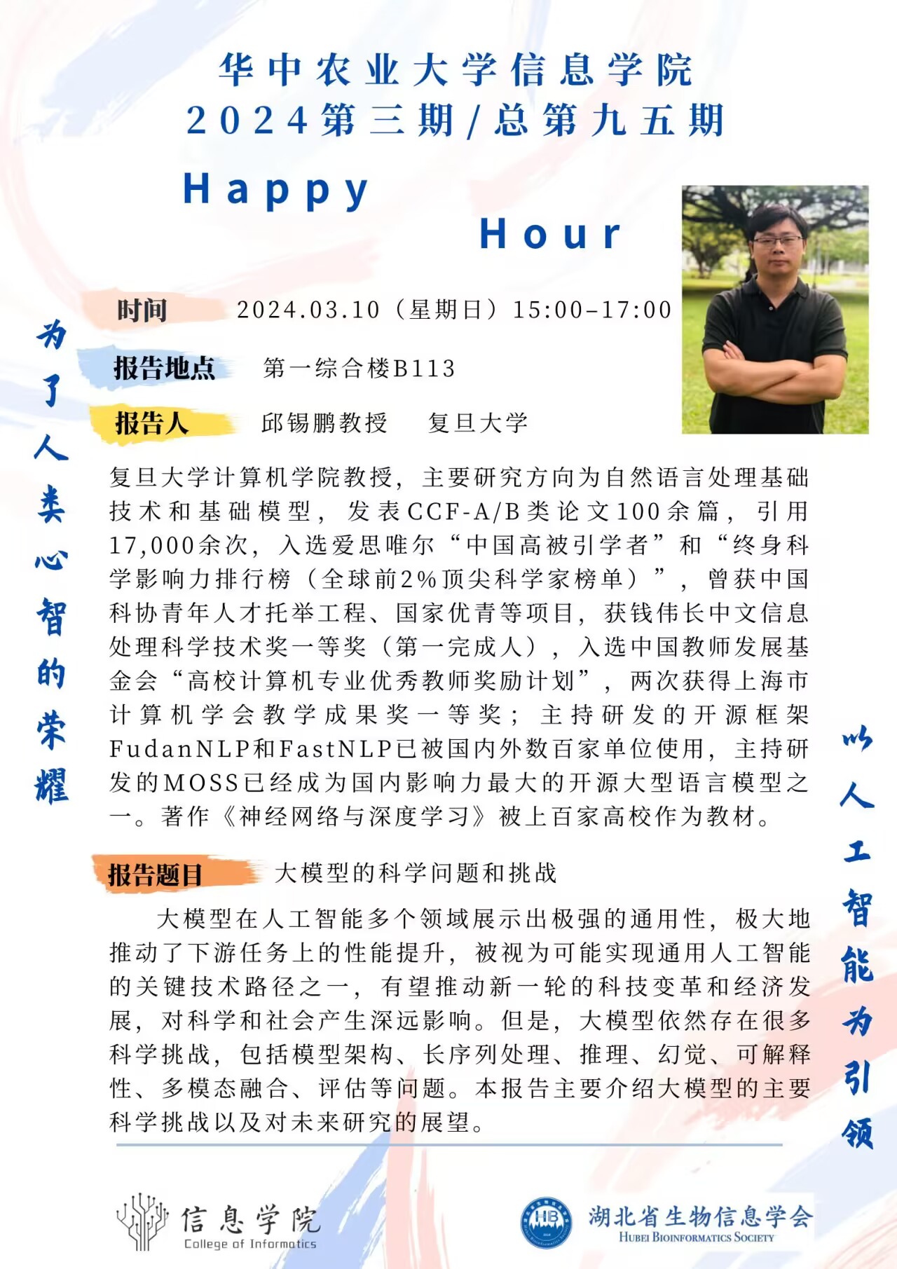 教授,主要研究方向为自然语言处理基础技术和基础模型,发表CCF-A/B类论文100余篇,引用17,000余次,入选爱思唯尔“中国高被引学者”和“终身科学影响力排行榜(全球前2%顶尖科学家榜单)”,曾获中国科协青年人才托举工程、国家优青等项目,获钱伟长中文信息处理科学技术奖一等奖(第一完成人),入选中国教师发展基金会“高校计算机专业优秀教师奖励计划”,两次获得上海市计算机学会教学成果奖一等奖,主持研发的开源框架FudanNLP和FastNLP已被国内外数百家单位使用,主持研以发的MOSS已经成为国内影响力最大的开源大型语言模型之人一。著作《神经网络与深度学习》被上百家高校作为教材。