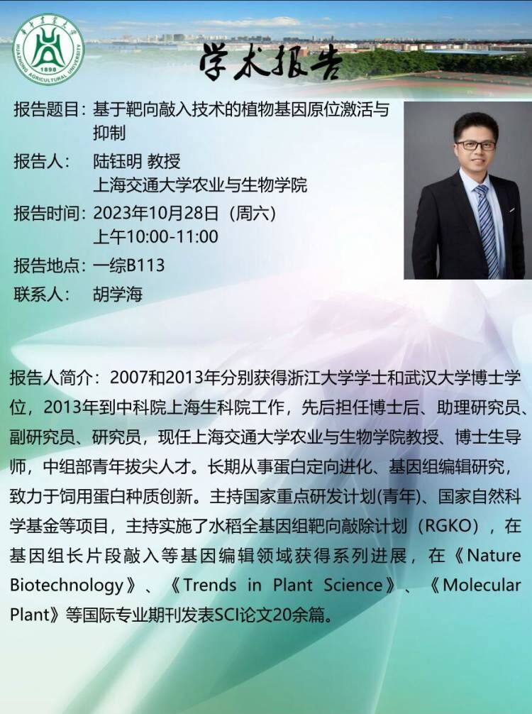 报告题目:基于靶向敲入技术的植物基因原位激活与抑制