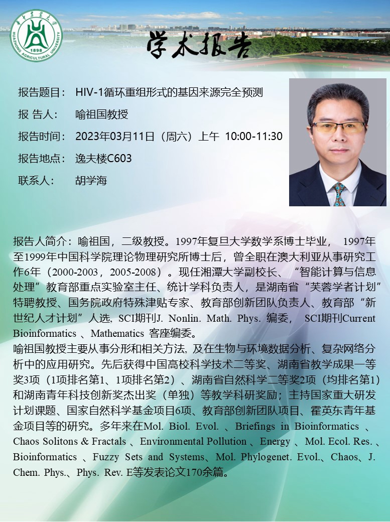 学术报告:HIV -1循环重组形式的基因来源完全预测