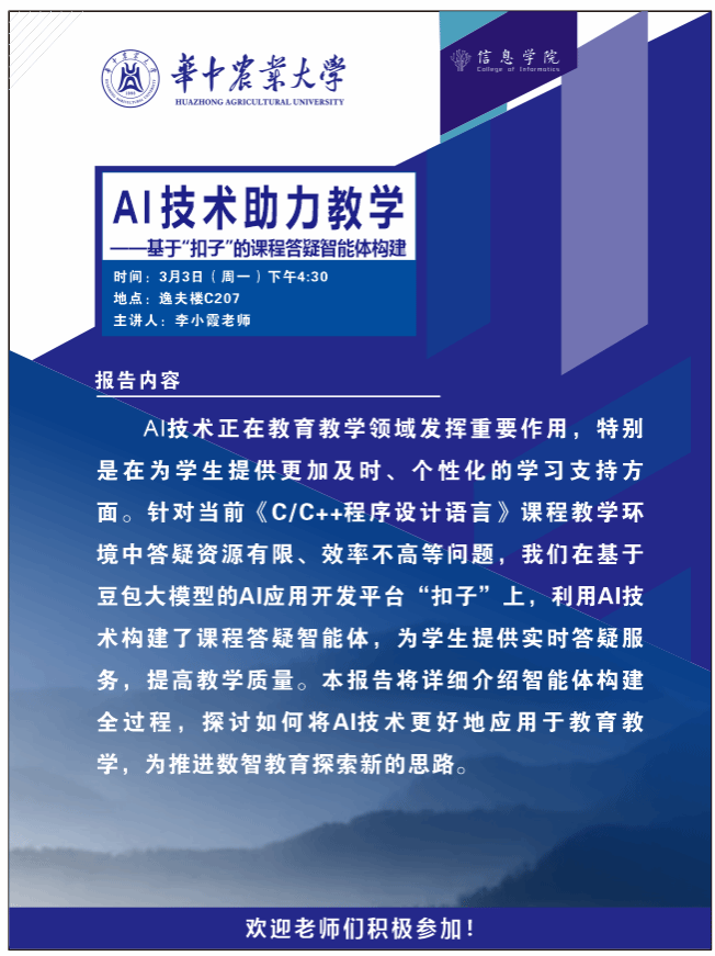 AI技术正在教育教学领域发挥重要作用,特别是在为学生提供更加及时、个性化的学习支持方面。针对当前《C/C++程序设计语言》课程教学环境中答疑资源有限、效率不高等问题,我们在基于豆包大模型的AI应用开发平台“扣子”上,利用AI技术构建了课程答疑智能体,为学生提供实时答疑服务,提高教学质量。本报告将详细介绍智能体构建全过程,探讨如何将AI技术更好地应用于教育教学,为推进数智教育探索新的思路。