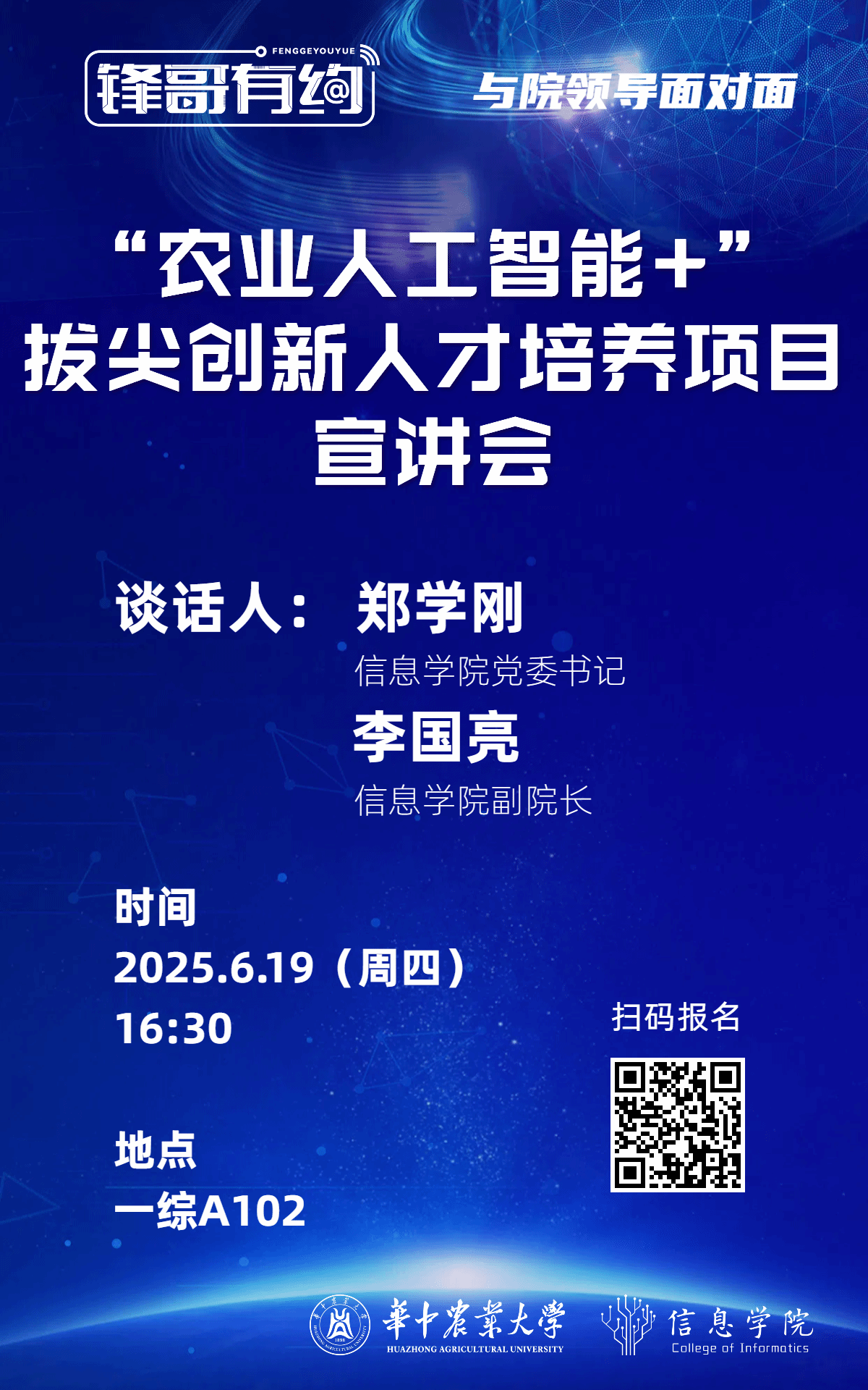 “锋哥有约”之与院领导面对面:"农业人工智能+"拔尖创新人才培养项目宣讲会