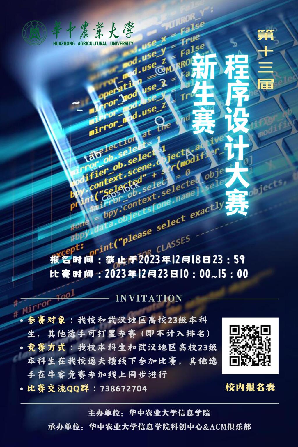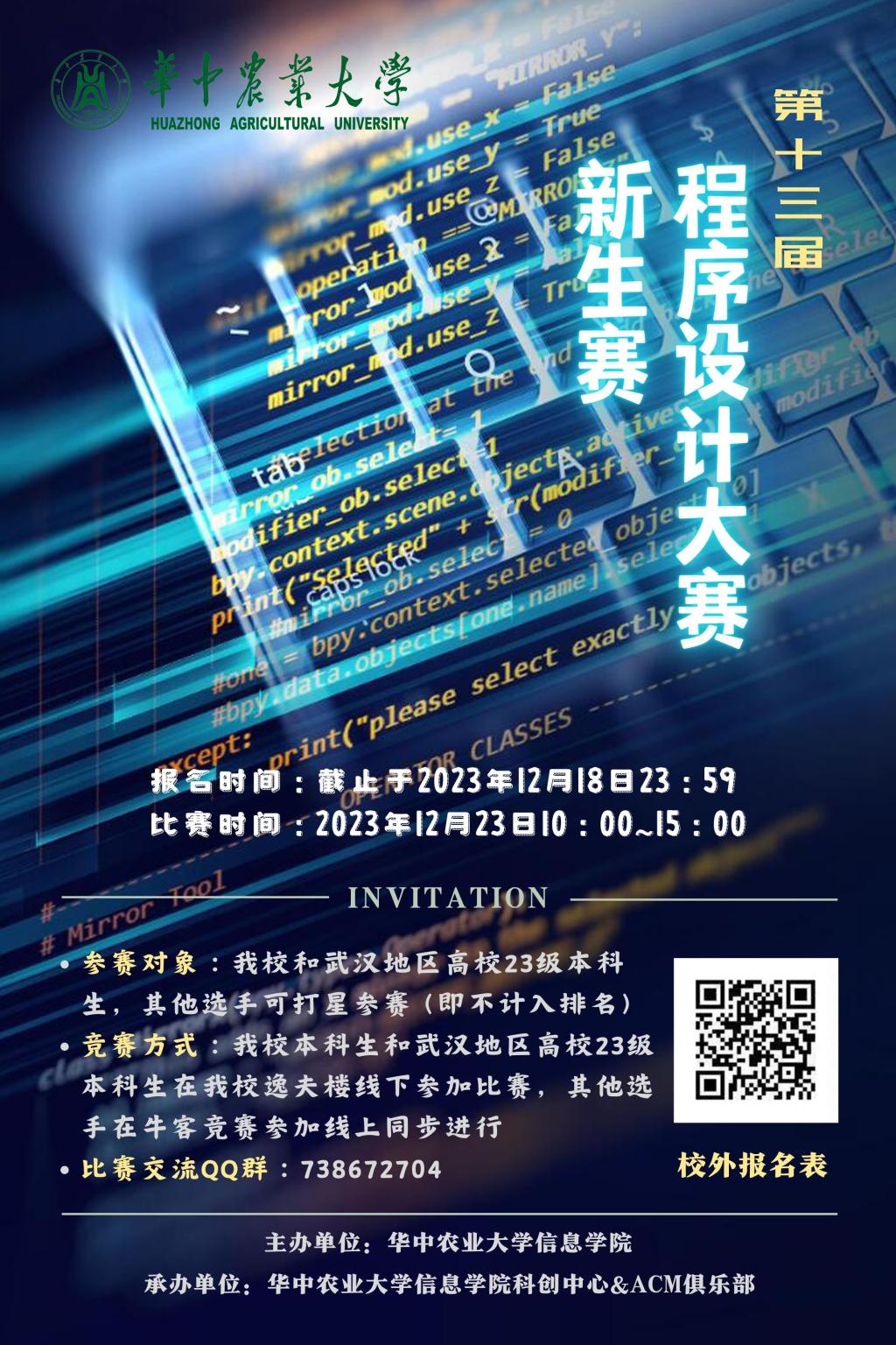 竞赛方式:明星换脸av 本科生和武汉地区高校23级本科生在明星换脸av 逸夫楼线下参加比赛,其他选手在牛客竞赛OJ上参加线上同步赛