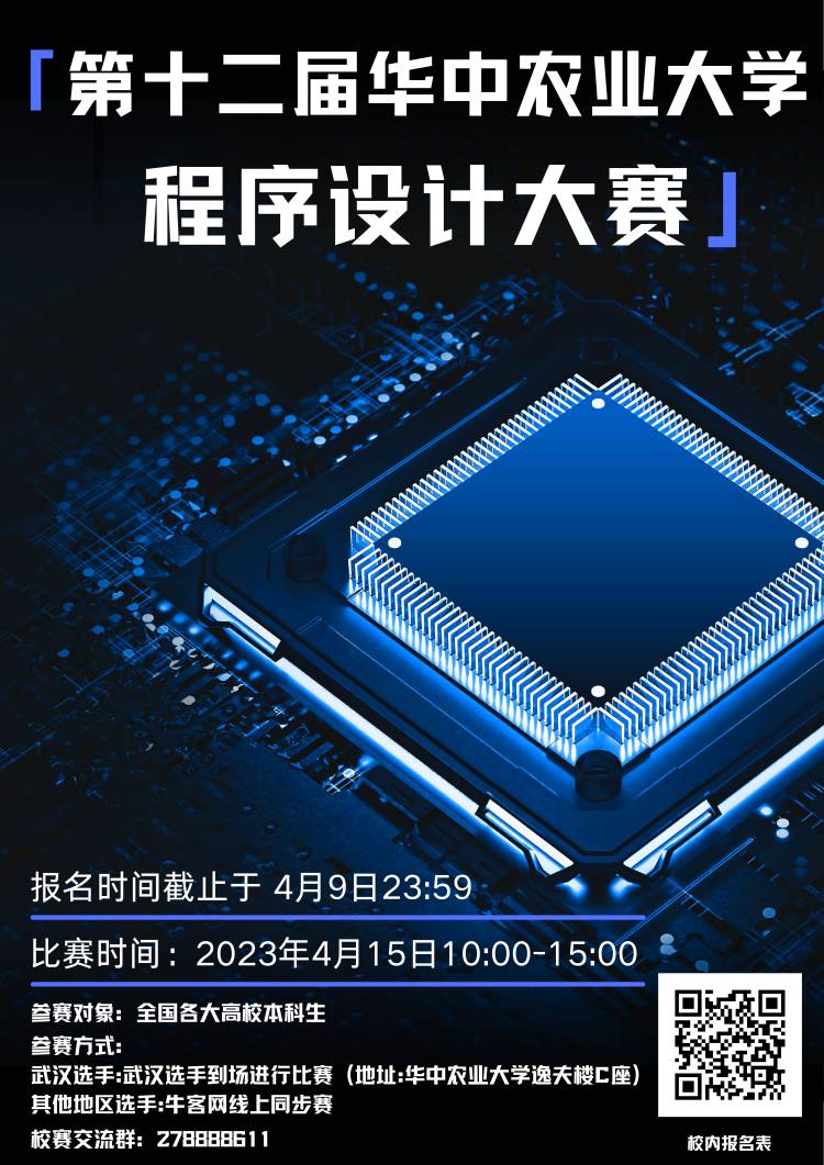 为进一步增强大学生计算机素养,培养创新思维,提升利用计算机分析解决问题能力,明星换脸av 特举办2023年第十二届程序设计大赛(校赛)暨全国高校程序设计网络邀请赛(校赛)。