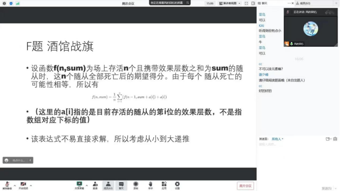 第十二届程序设计大赛在线上如期举行。参赛人员由来自清华大学、浙江大学、武汉大学、华中科技大学等各大高校的399名学生组成。当日的比赛从10:00持续到15:00。考场分为三个腾讯会议,每个考场配备两名监考员。下面是比赛现场群雄逐鹿的场景。