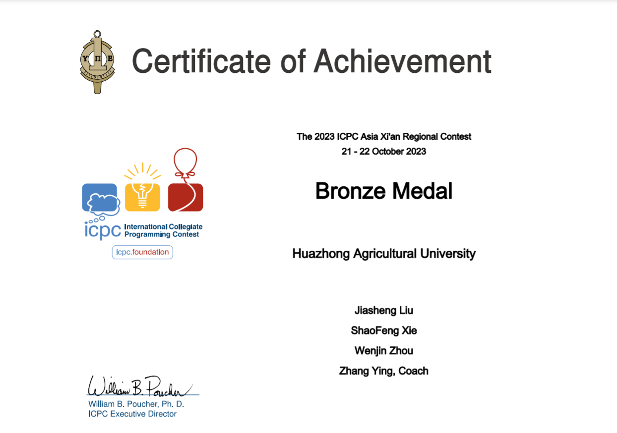 2023年ACM-ICPC国际大学生程序设计大赛亚洲区域赛(西安)——铜奖