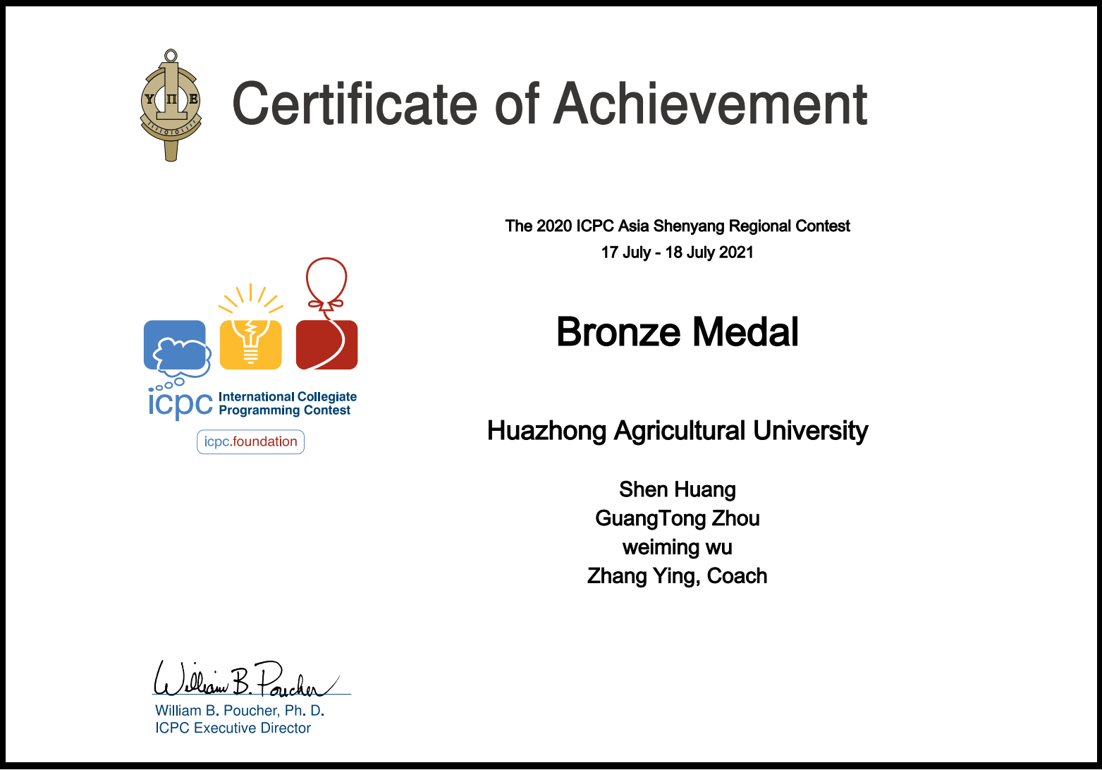 2021年第45届ACM-ICPC国际大学生程序设计竞赛亚洲区域赛(沈阳)——铜奖
