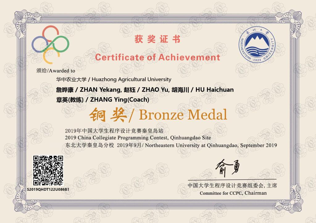 2019年第五届中国大学生程序设计竞赛(秦皇岛)——铜奖