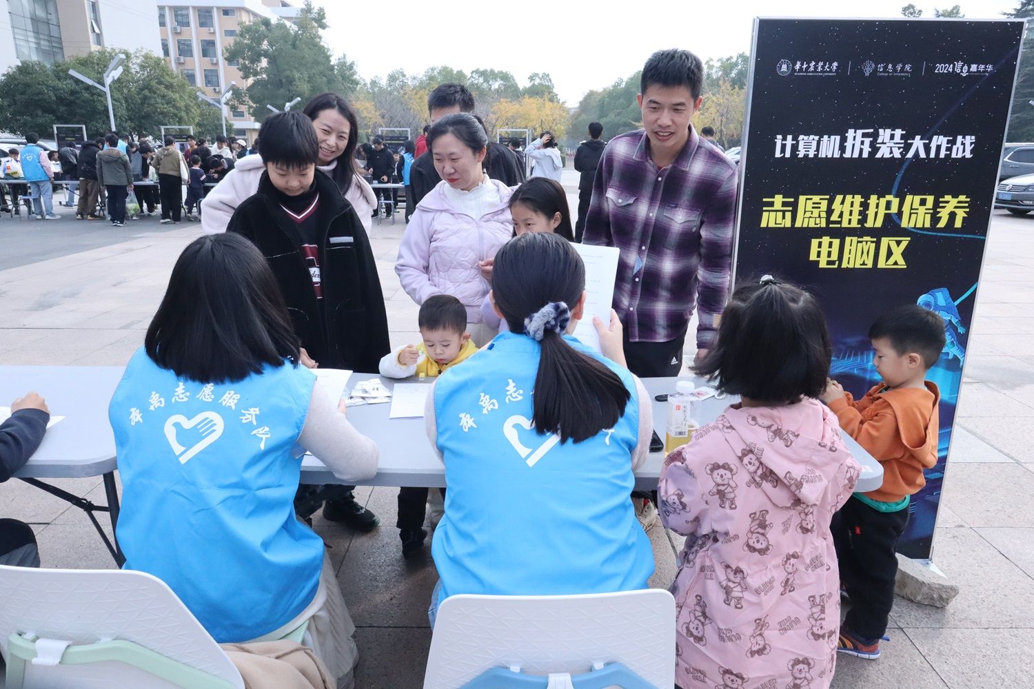 此外,在今年特别设置的知识问答区,一系列既与计算机紧密相关又贴近大众日常生活的趣味问题吸引了许多人驻足。参与者只需正确回答三道题目,便能赢得特色奖品。在电脑维护保养区,志愿者们为参与的同学传授电脑保养小窍门,并免费提供内存清理和系统重装的服务。