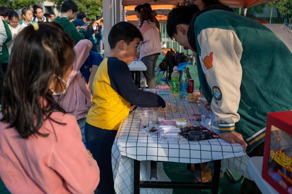 第六届数学文化节之“玩转数学”擂台赛在此举行,11项各具特色的数学游戏吸引了数百名师生前来体验和挑战,欢笑声不时响彻运动场。