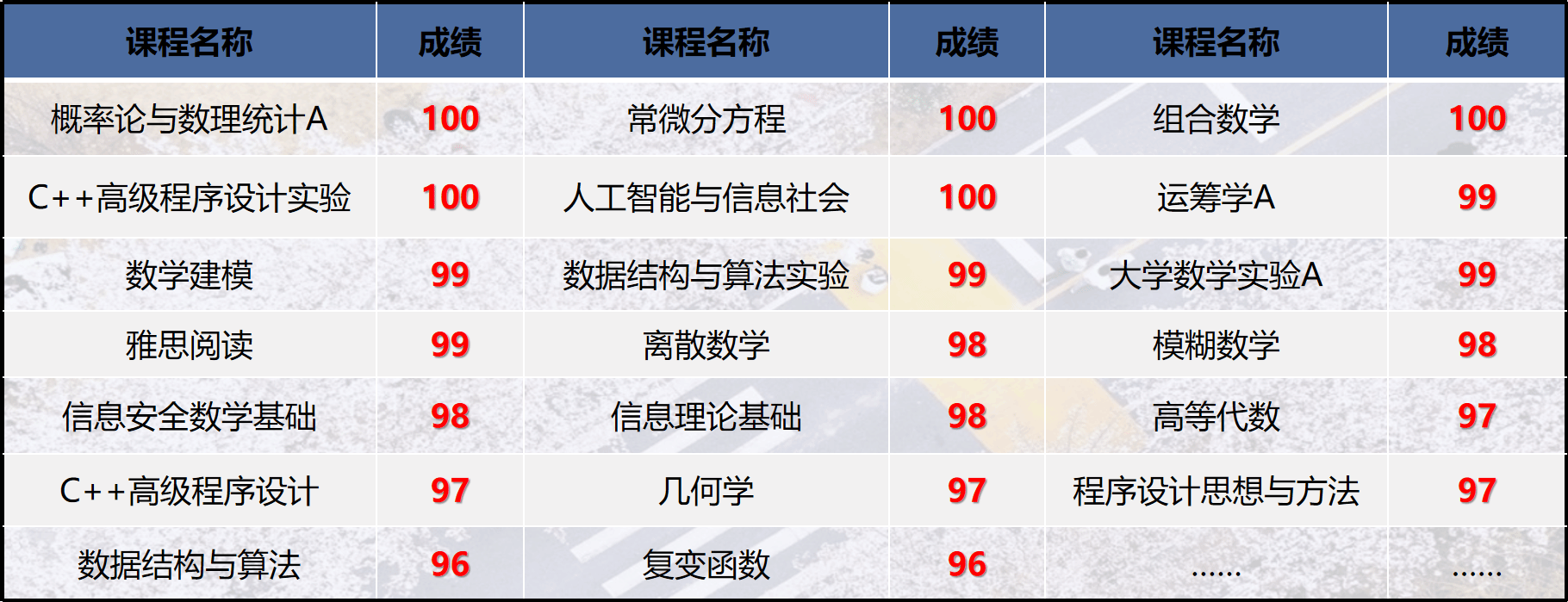 56门课程满绩,其中100分课程5门,95分以上课程30门