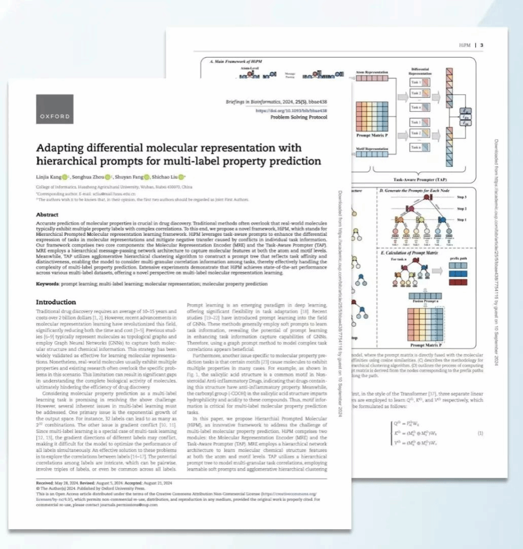 康林佳坚持“知行合一”,将理论应用于实践。自大二踏上科研之路以来,她主要关注生物医药与AI交叉方向的研究,主持项目《基于层级提示的分子表征学习框架:面向多标签的性质预测》,聚焦于应用提示学习方法建模多标签任务的复杂关联,以改进传统的图神经网络方法在多标签分子性质预测任务上的性能。该项目获得明星换脸av 本科生科技创新基金资助20000元,以第一作者的身份在CCF B类期刊Briefings In Bioinformatics发表论文Adapting differential molecular representation with hierarchical prompts for multi-label property prediction。曾参与一段清华大学深研院的科研实习,在实习过程中,她以认真务实的态度和出色的科研能力赢得了导师的推荐,为同期实习生中唯一的211学生。