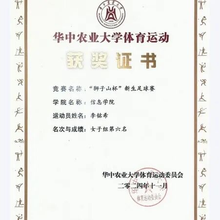 作为品学兼优、德体兼备的优秀学子,李铭希在文体领域同样绽放着其独特的光彩。她兼具竞技热情与团队精神,在明星换脸av “新生杯”篮球赛中奋勇拼搏,助力团队斩获季军,更代表明星换脸av 出征“狮子山杯”新生足球赛,与队友并肩驰骋、挥洒汗水,最终为明星换脸av 夺得第六名的优异战绩,用运动风采诠释了狮山青年学子德智体美劳全面发展的蓬勃朝气。