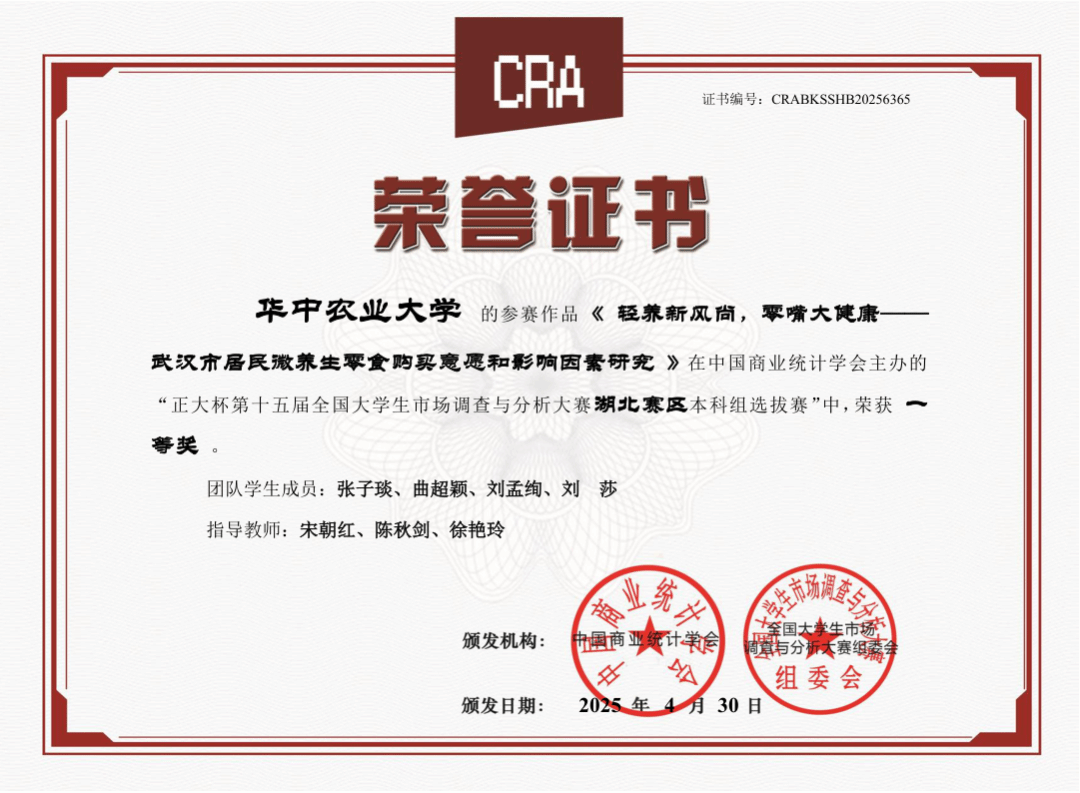 在学业方面,刘孟绚成绩斐然。大一大二两个学年中,有15门课程成绩达到95分及以上,35门课程成绩达到90分及以上。她不仅专注于学业,也积极参与各类竞赛,以赛促学。从"正大杯"全国大学生市场调查与分析大赛中斩获省一等奖,到"华中杯"大学生数学建模挑战赛中荣获省二等奖,她在不同领域的竞赛中不断挑战自我,将理论知识应用于实践,获得了多项荣誉。