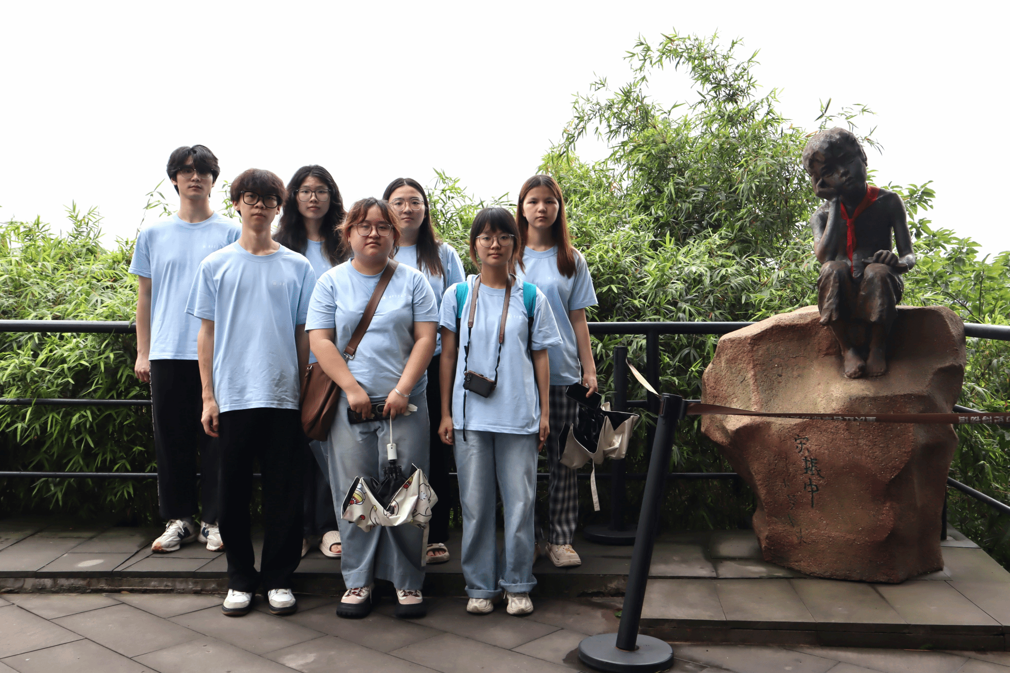 登上长长的石阶,团队成员们抵达白公馆遗址,在小萝卜头宋振中纪念雕像前驻足默哀,缅怀这位年仅8岁的革命烈士及其父母宋绮云、徐林侠英勇就义的悲壮历史。小萝卜头的雕像静静伫立在山坡上,手里还攥着一截小粉笔——那是他在狱中难得的学习工具。如今站在这一方承载着无尽悲痛的土地上,成员们心情沉重,久久不能平静。通过参观烈士事迹陈列、瞻仰埋葬遗址,成员们深刻体会到革命者以生命践行信仰的伟大人格和无私精神。