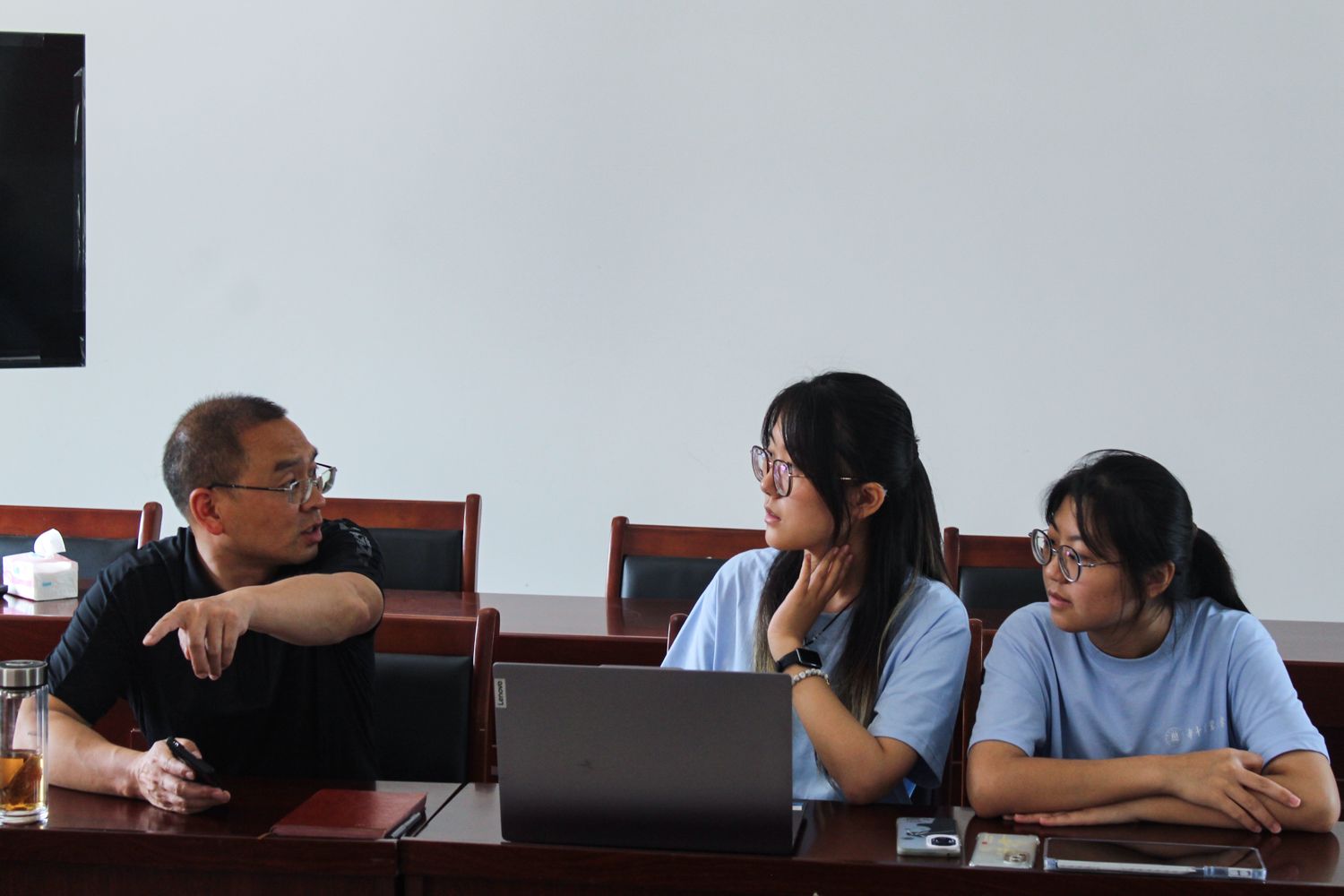 长坊村干部周林向团队介绍长坊村基本情况 朱锦铭供图