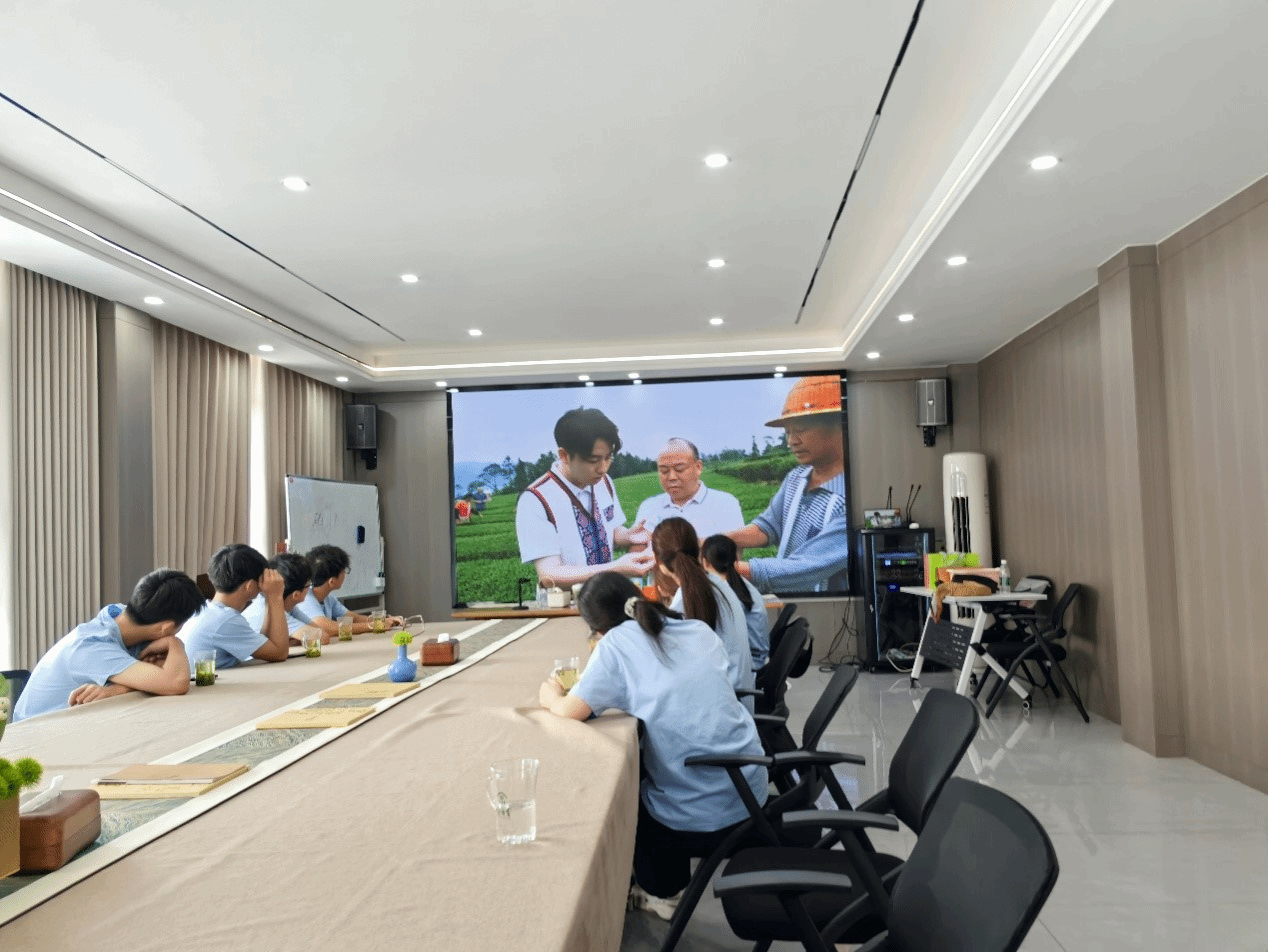 在金苔香茶业,董事长助理邓润娥与运营专员高玉琴为队员讲授题为《茶道初识:礼·器·心》的茶文化礼仪课程。课程内容包括常见茶具的名称、功能与摆放顺序,茶席布置规范,以及品茶基本礼仪。